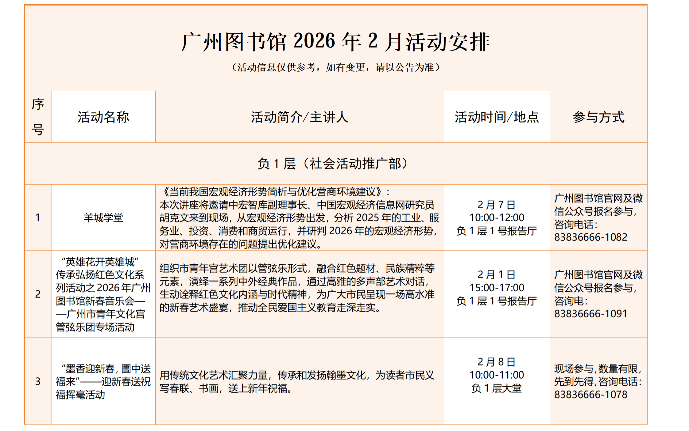 广州图书馆2026年2月活动安排