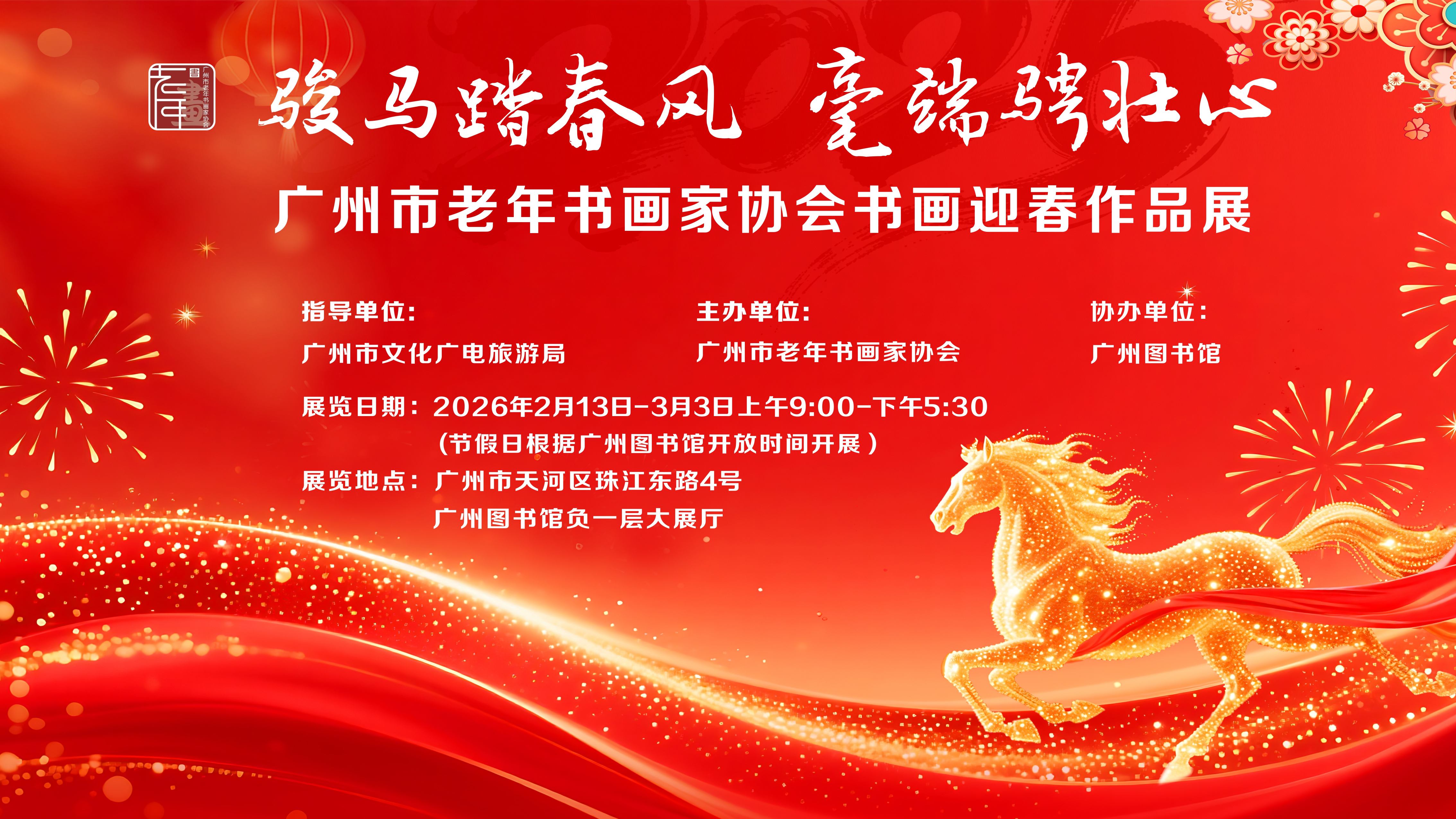 丙午马年新春将至,值此辞旧迎新之际,广州市老年书画家协会和广州图书馆联合举办“骏马踏春风 毫瑞骋壮心”书画迎春作品展,以笔墨丹青贺新春,邀市民共赏翰墨之美。