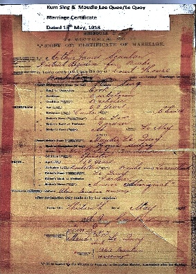 凯瑟琳·坤兴:我的曾祖父是中国人,据我们了解,他曾经是一个菜农,娶了我的曾祖母安妮,来自卡奔塔利亚湾小镇博罗卢拉族的原住民。他们于1898年5月27日在伯克敦结婚。那时,有一些原住民部落的人住在伍兹湖附近。伍兹湖是一个水源丰富的地方,非常适合种植,很多华人就是看好这一点,纷纷搬过来定居。由此,华人与当地原住民交往的历史也就从这里开始了。在那个年代,华人和原住民都被欧洲人主导的主流社会所排斥。他们面临着相似困境,进而发展为相互尊重,并有了两族的通婚。