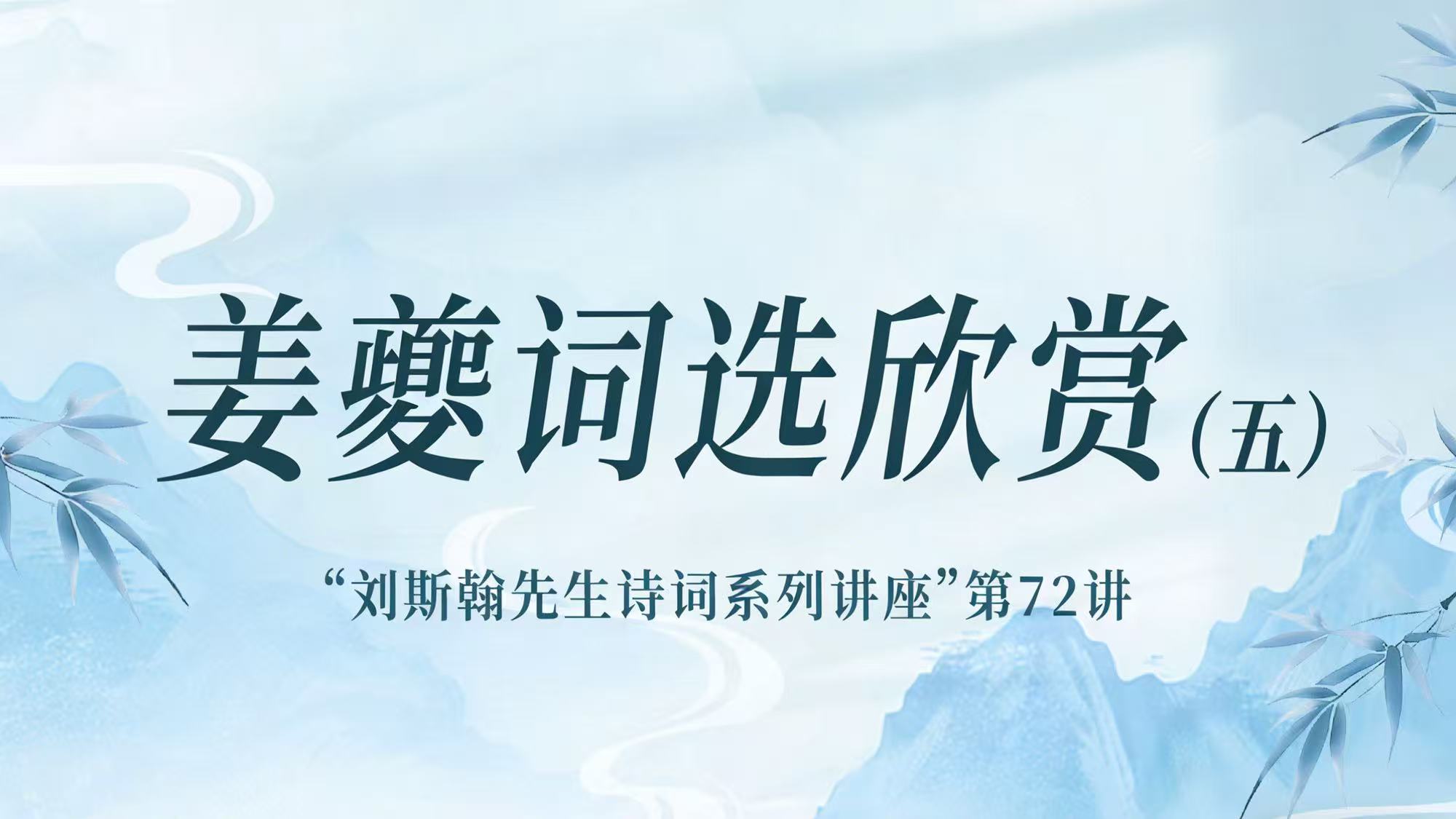 3月21日,“刘斯翰先生诗词系列讲座”举办第72讲,主讲嘉宾刘斯翰老师将带领我们赏析姜夔词作《庆宫春(双桨蓴波)》、《夜行船(略彴横溪人不度)》,透过词人时空转换的笔法,品味其中空灵苍茫的意境和含蓄婉转的情意。