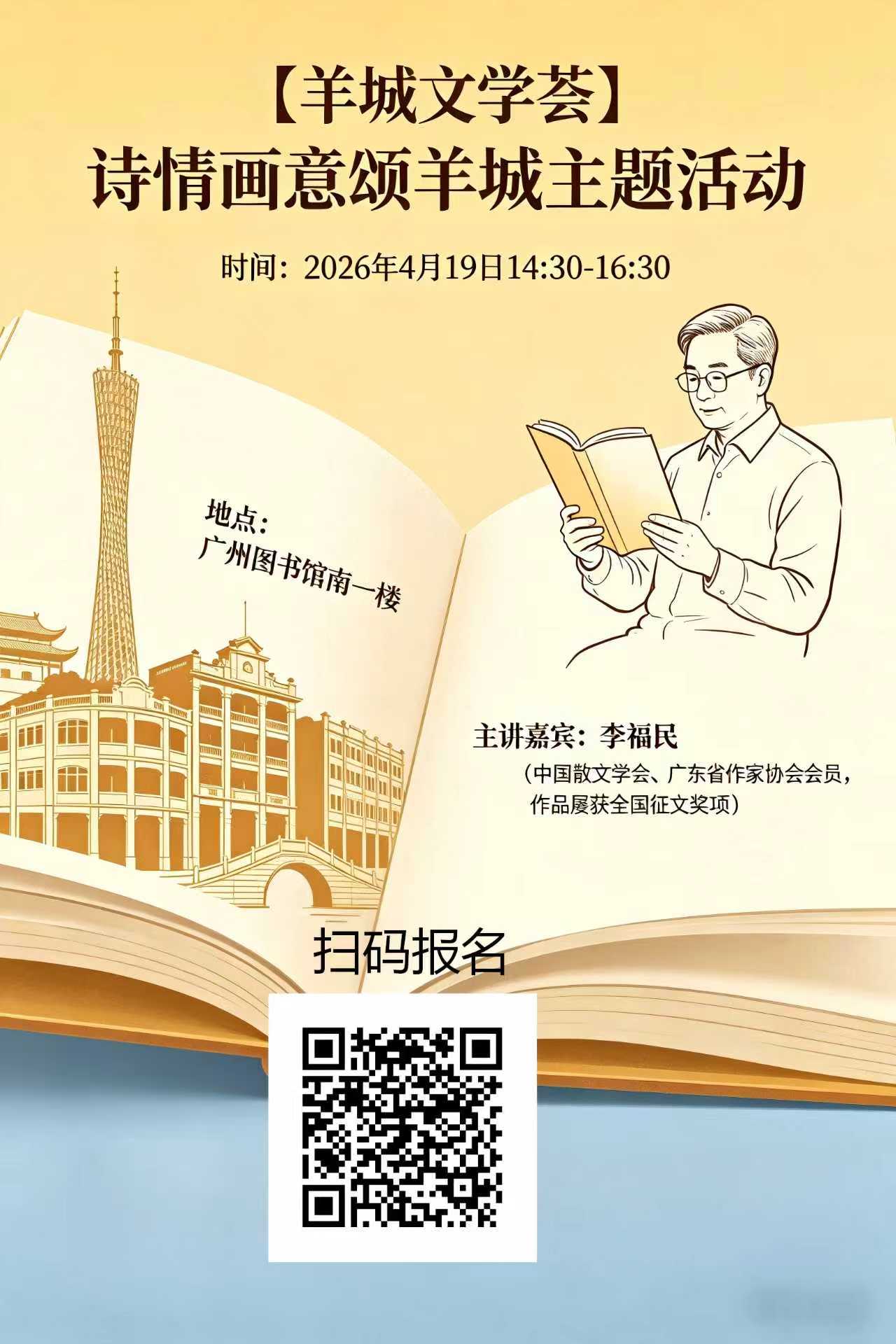 千年羊城,诗韵流淌。一场以诗词为媒,品读城市烟火与人文风华的“诗情画意颂羊城·悦享读书会”将在广州图书馆南一楼启幕,诚邀诗词爱好者共赴这场诗意盛宴。