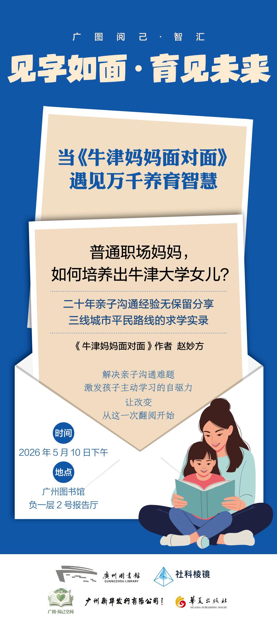 这个母亲节,送自己一份不一样的礼物。5月10日,“阅己空间?智汇”系列首期活动特邀《牛津妈妈面对面》作者赵妙方,为广大家长带来一场关于内驱力培养的深度分享。作为一位陪伴孩子一路成长、最终叩开牛津大学之门的母亲,赵妙方将以真实经历为蓝本,拆解一套温和而有效的教养方法——通过写信、共写日记等文字沟通形式,搭建亲子间的情感桥梁,在润物无声中唤醒孩子的内在动力。
